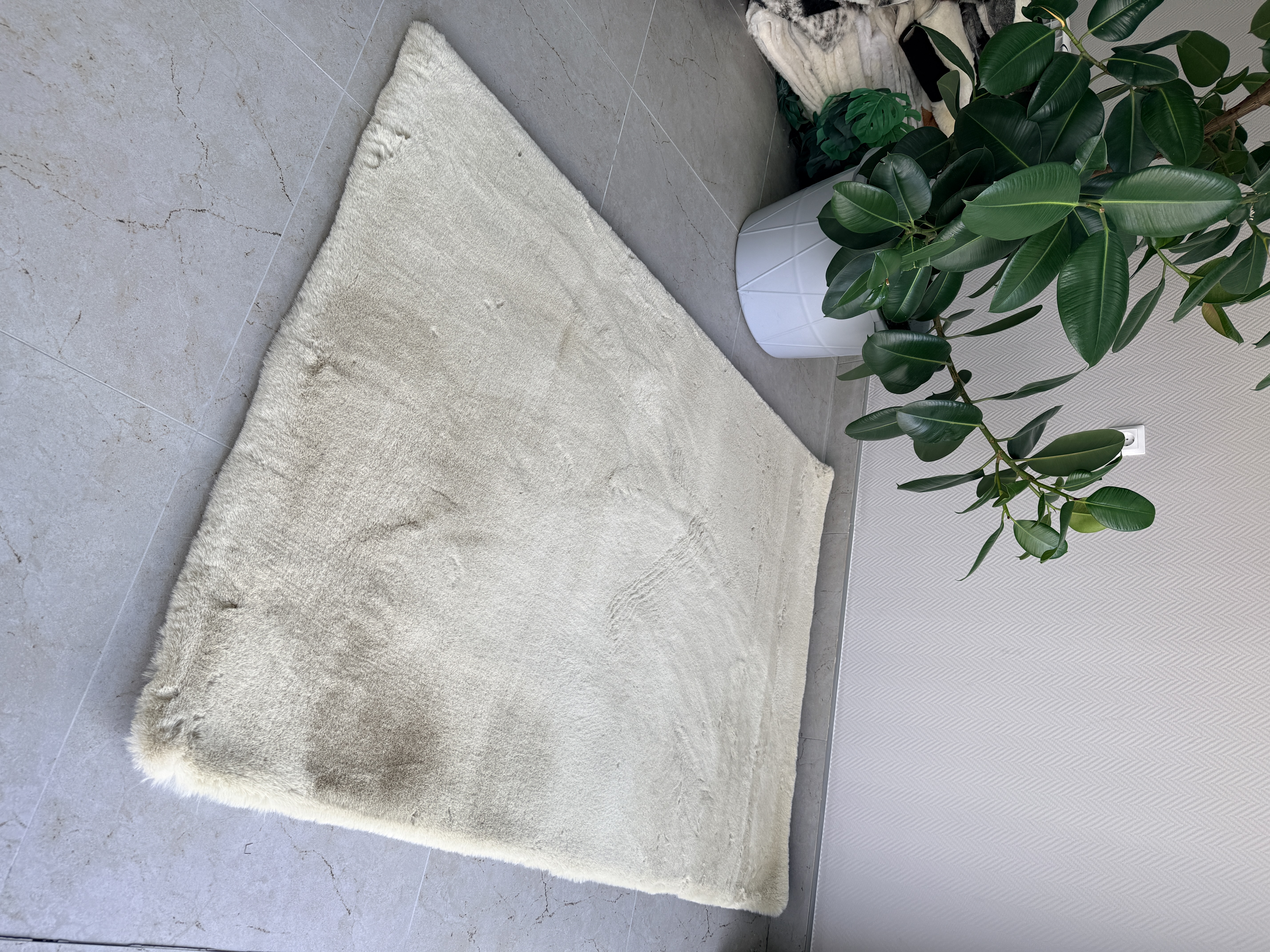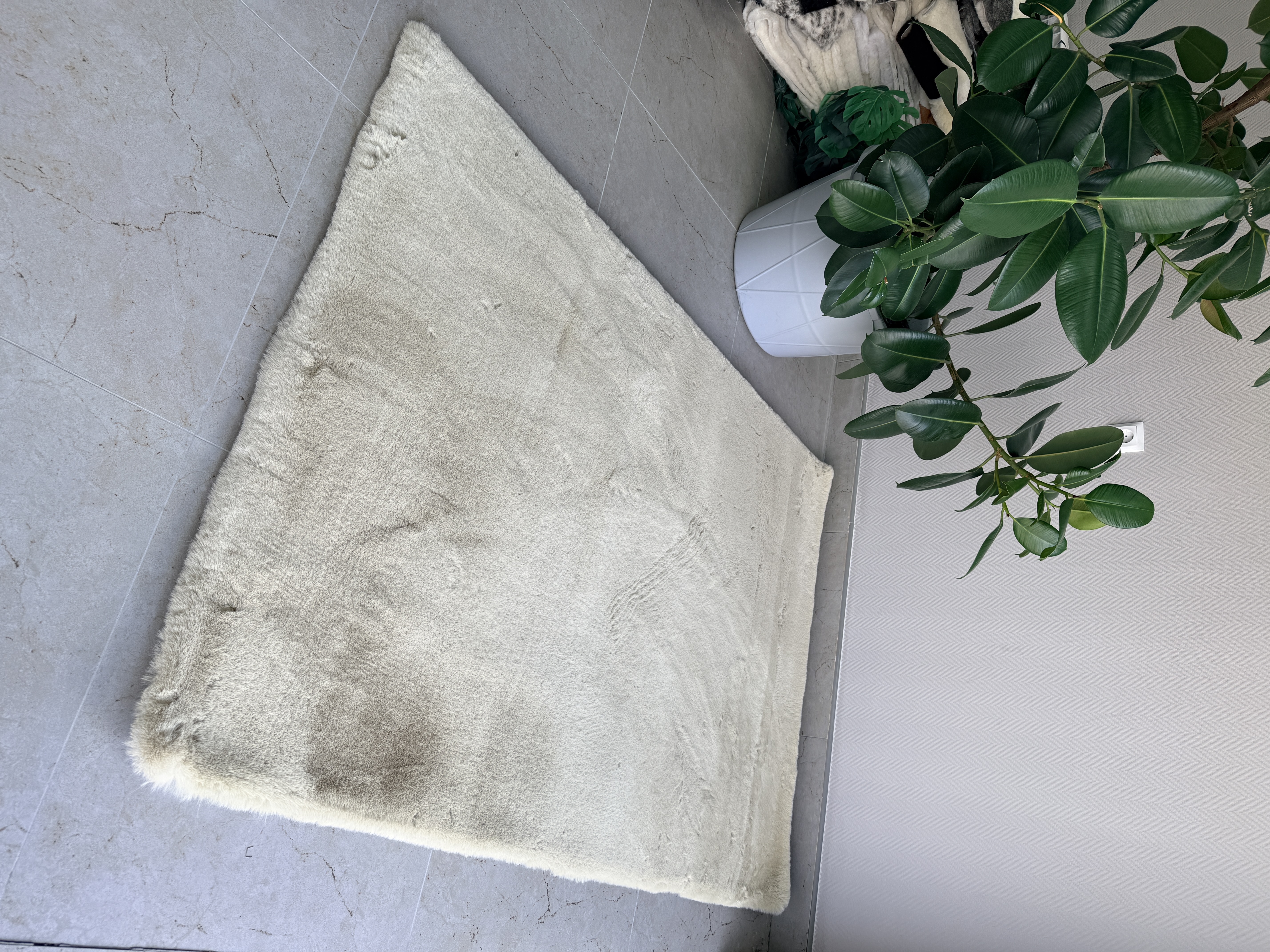 Нежная текстура: плотный ворс (3,5 см) имитирует натуральный кроличий мех — невероятно мягкий и приятный на ощупь.