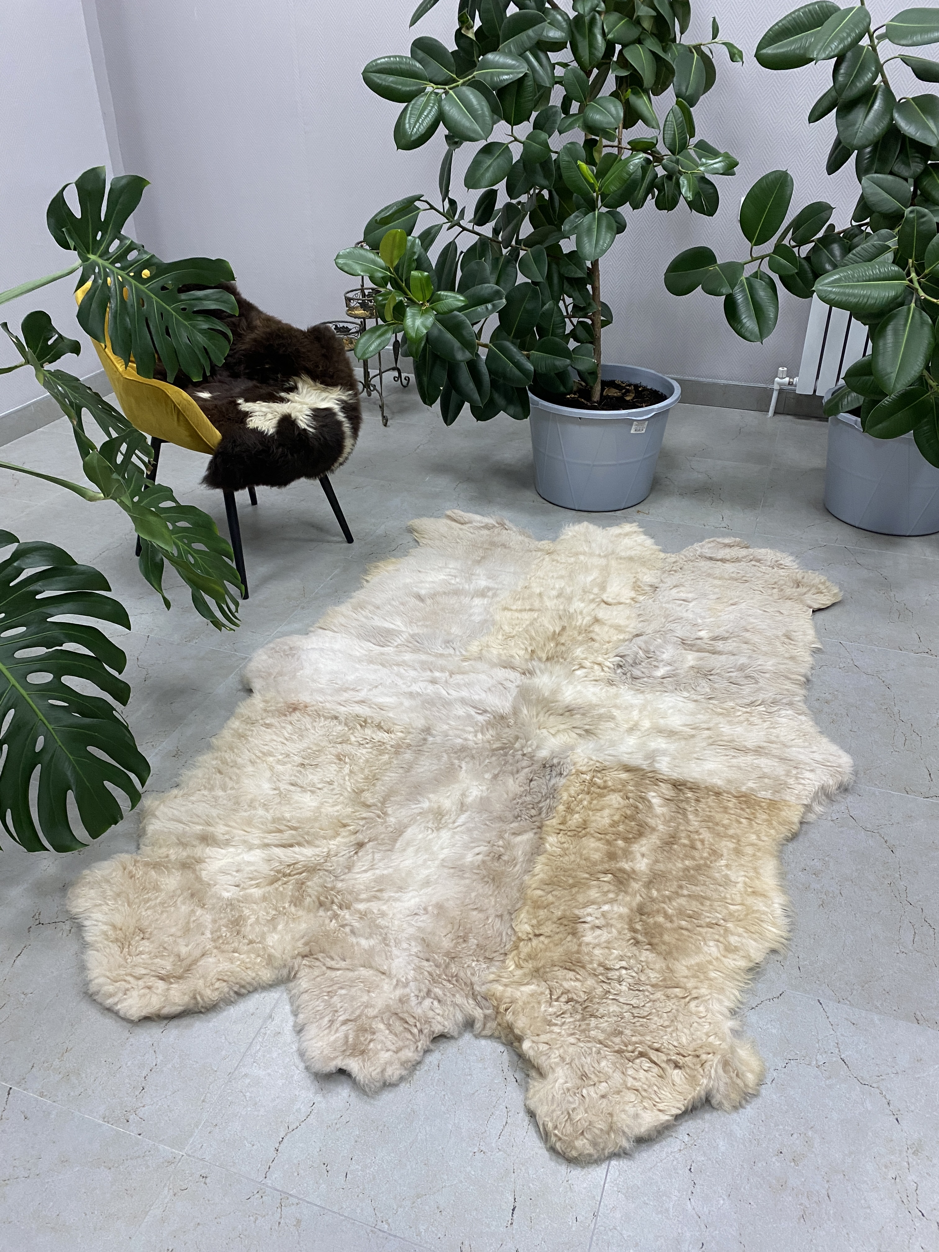 Этот роскошный пушистый ковер из натуральной овчины станет идеальным дополнением к любому интерьеру, добавив нотку уюта и тепла. Он изготовлен из 6 цельных шкур овчины размером 190x160 см, что делает его достаточно большим для просторной гостиной, уютной спальни или детской комнаты.