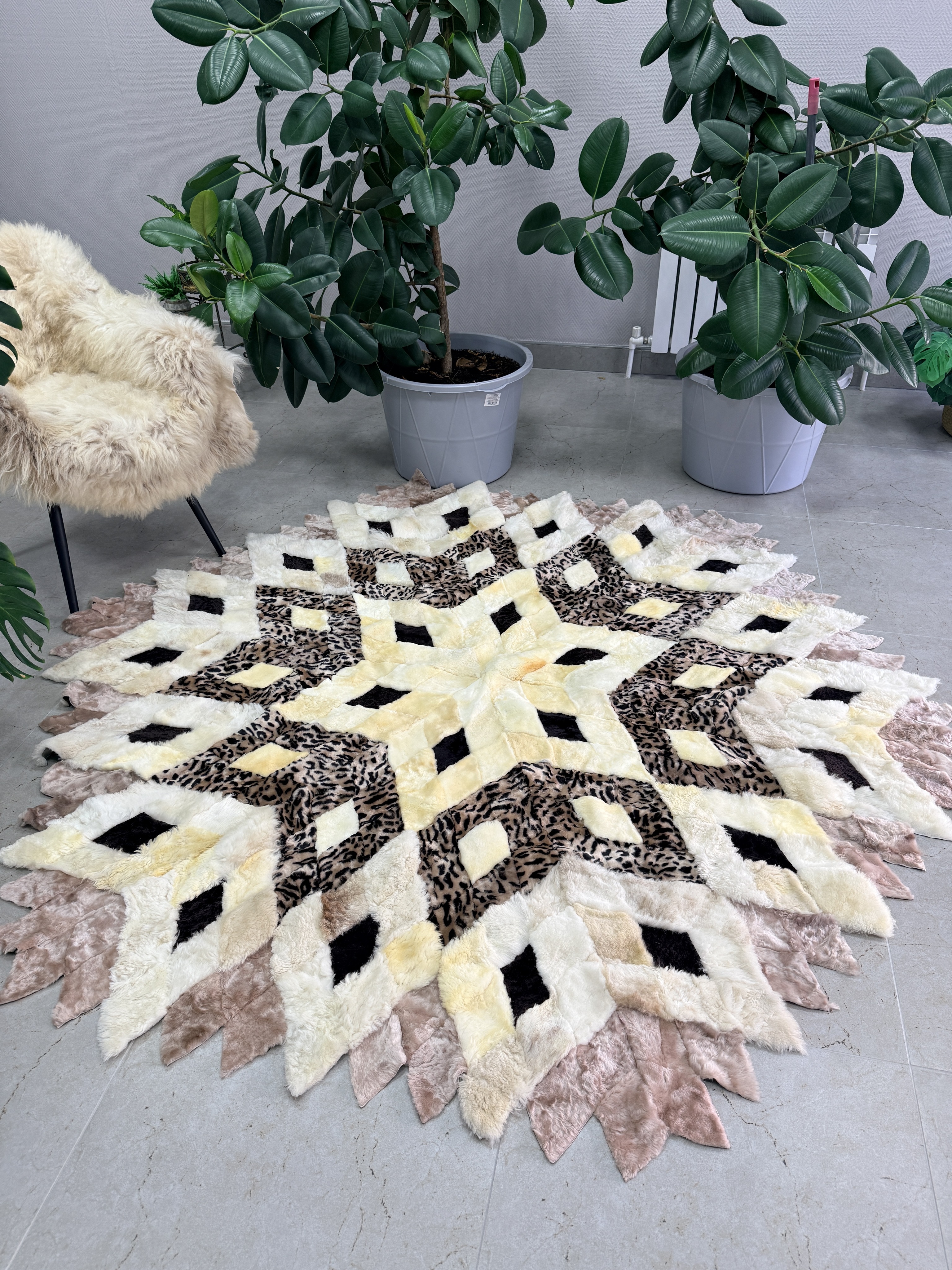 Натуральный меховой ковер на пол размером: 175 см х 175 см.Представляем вашему вниманию выделанные овечьи шкуры от компании Barashka34. Уже более 10 лет мы с любовью создаем интерьерные натуральные ковры, покрывала, накидки для кресла . Наши постоянные клиенты высоко ценят уникальность, качество и красоту ручной работы наших опытных мастеров. Натуральный мех – это бесспорно непревзойденный материал для статусности и комфорта современного и классического интерьера.Этот натуральный меховой коврик, шкура овечья, займет достойное место в обстановке дома, дачи и коммерческих помещений, в вашу гостиную, спальню, холл, рабочий кабинет. Придаст уют, комфорт и аутентичность пространству. Одно из главных преимуществ коврика мехового, это природное свойство меха – терморегуляция. Она придает зоне, покрытой шкурой, непередаваемый комфортом – вам будет тепло в холодные периоды, и не жарко, в теплые. Мех натуральной для интерьера, это безопасно, он не содержащих вредных химических веществ и безопасен. Сохраняет тепло и может использоваться как дополнительное утеплительное покрытие на кровати или на диване, в качестве мехового пледа в холодное время года. Регулирует влажность в помещении и поглощать запахи.Изделия из натурального выделанного меха от Barashka34 – это еще и эффективная инвестиция. Интерьерные натуральные ковры от Barashka34 способны на долгие года занять достойное место в интерьерах вашей семьи, передаваясь от поколения к поколению. За счет высокой износостойкости натурального меха и качества работы мастеров. Натуральный материал известен своей долговечностью, хорошо сохраняет свойства, не теряет внешний вид даже после многолетнего использования при правильном уходе.Выделанная шкура овцы – прекрасный выбор для любителей окружать себя уникальными вещами с историей, красивых и качественных изделий из натуральных материалов. Отличный подарок маме, супругу, на юбилей, на праздник.Вся продукция от Barashka34 из натуральных материалов, невероятно мягкая, т.к. в структуре натурального ворса содержатся мелкие волоски. Мех не вызывает раздражения или аллергических реакций. Кроме того, выделанная шкура овцы обладает высокой прочностью и износостойкостью. Она не рвется, не линяет и не деформируется со временем. Благодаря этому изделия из овечьей шкуры могут служить вам долгие годы, сохраняя при этом свои первоначальные свойства.Если вы хотите сделать свой дом местом особенной атмосферы и отдыха, то шкуры выделанные Barashka34 – идеально справятся с задачей!