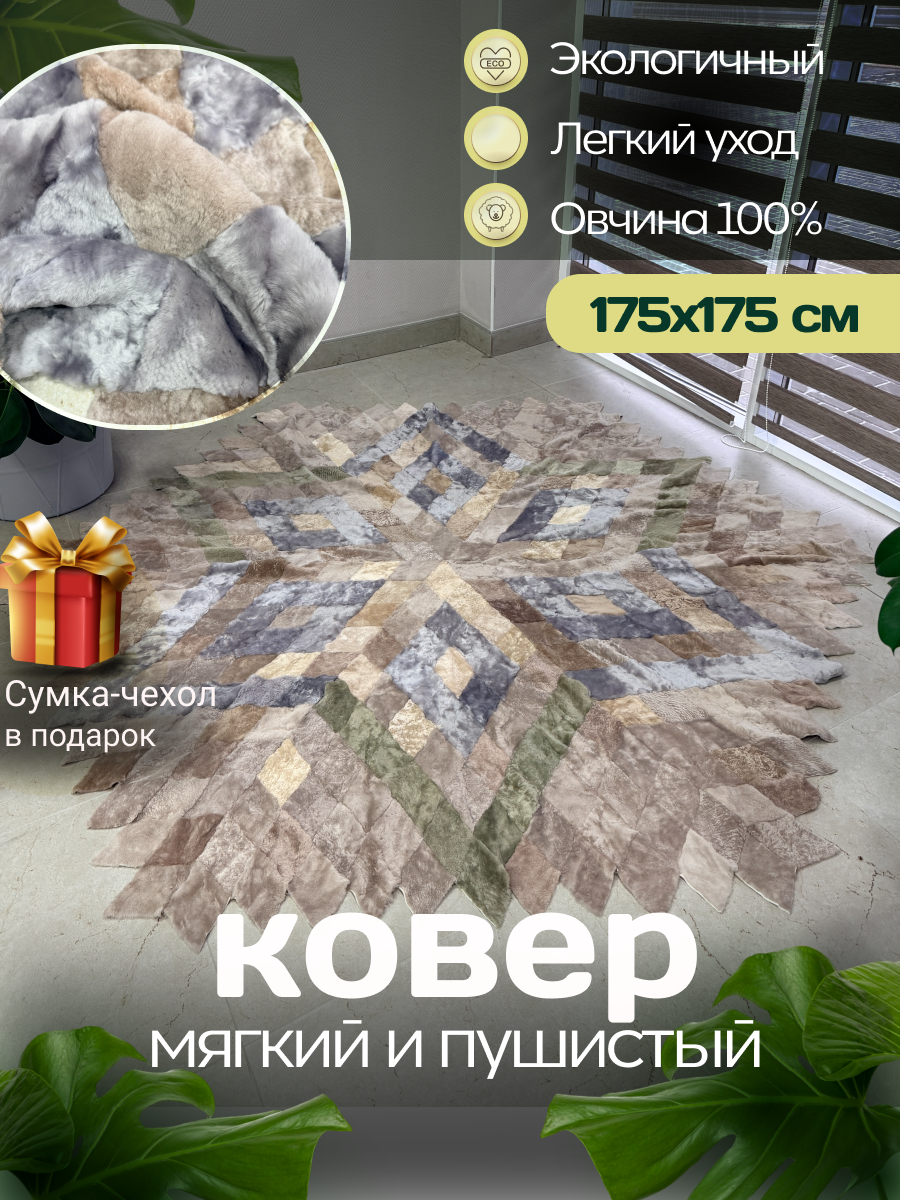 Натуральный меховой ковер на пол размером: 175 см х 175 см.Представляем вашему вниманию выделанные овечьи шкуры от компании Barashka34. Уже более 10 лет мы с любовью создаем интерьерные натуральные ковры, покрывала, накидки для кресла . Наши постоянные клиенты высоко ценят уникальность, качество и красоту ручной работы наших опытных мастеров. Натуральный мех – это бесспорно непревзойденный материал для статусности и комфорта современного и классического интерьера.Этот натуральный меховой коврик, шкура овечья, займет достойное место в обстановке дома, дачи и коммерческих помещений, в вашу гостиную, спальню, холл, рабочий кабинет. Придаст уют, комфорт и аутентичность пространству. Одно из главных преимуществ коврика мехового, это природное свойство меха – терморегуляция. Она придает зоне, покрытой шкурой, непередаваемый комфортом – вам будет тепло в холодные периоды, и не жарко, в теплые. Мех натуральной для интерьера, это безопасно, он не содержащих вредных химических веществ и безопасен. Сохраняет тепло и может использоваться как дополнительное утеплительное покрытие на кровати или на диване, в качестве мехового пледа в холодное время года. Регулирует влажность в помещении и поглощать запахи.Изделия из натурального выделанного меха от Barashka34 – это еще и эффективная инвестиция. Интерьерные натуральные ковры от Barashka34 способны на долгие года занять достойное место в интерьерах вашей семьи, передаваясь от поколения к поколению. За счет высокой износостойкости натурального меха и качества работы мастеров. Натуральный материал известен своей долговечностью, хорошо сохраняет свойства, не теряет внешний вид даже после многолетнего использования при правильном уходе.Выделанная шкура овцы – прекрасный выбор для любителей окружать себя уникальными вещами с историей, красивых и качественных изделий из натуральных материалов. Отличный подарок маме, супругу, на юбилей, на праздник.Вся продукция от Barashka34 из натуральных материалов, невероятно мягкая, т.к. в структуре натурального ворса содержатся мелкие волоски. Мех не вызывает раздражения или аллергических реакций. Кроме того, выделанная шкура овцы обладает высокой прочностью и износостойкостью. Она не рвется, не линяет и не деформируется со временем. Благодаря этому изделия из овечьей шкуры могут служить вам долгие годы, сохраняя при этом свои первоначальные свойства.Если вы хотите сделать свой дом местом особенной атмосферы и отдыха, то шкуры выделанные Barashka34 – идеально справятся с задачей!