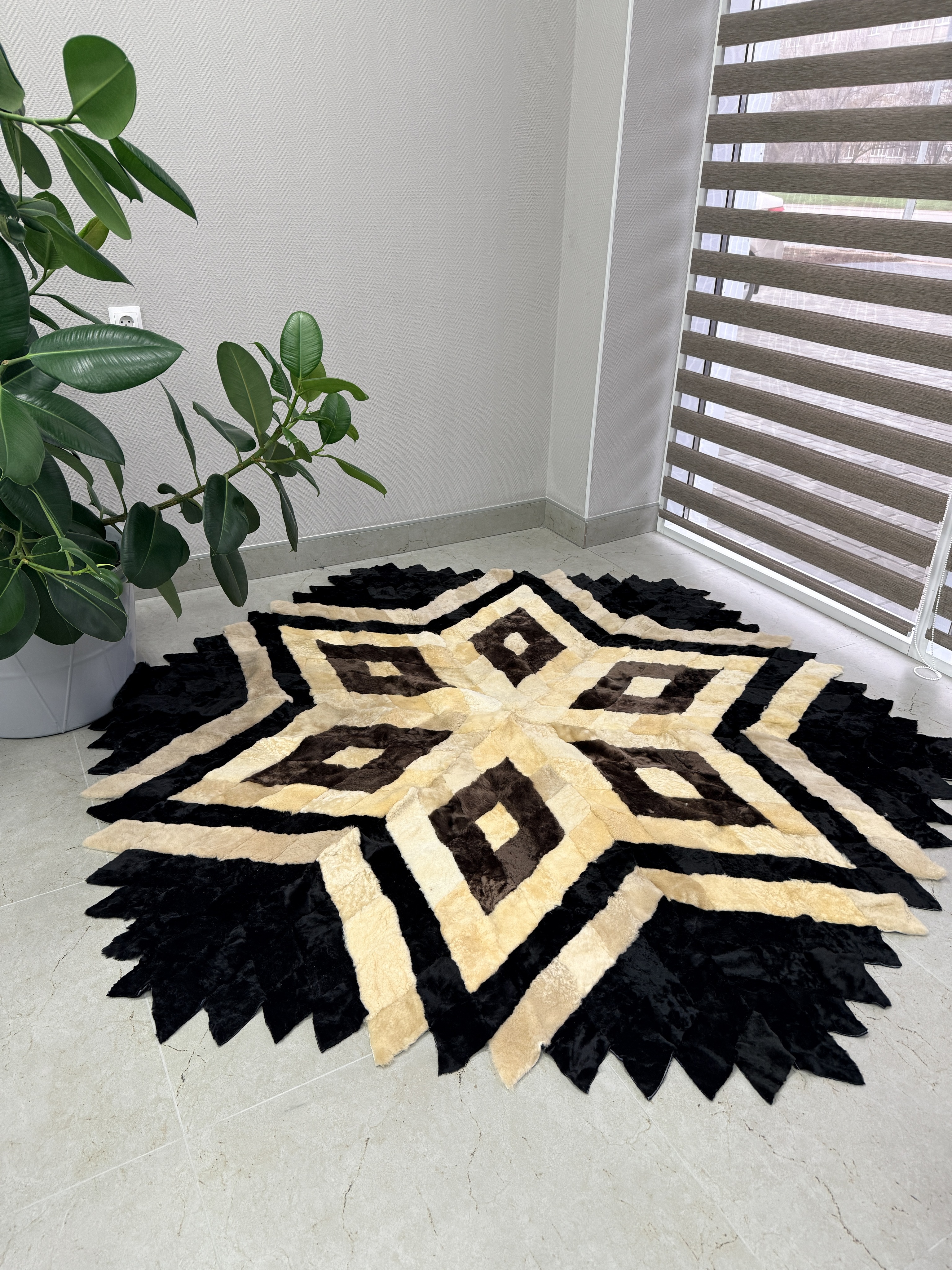 Натуральный меховой ковер на пол размером: 175 см х 175 см.Представляем вашему вниманию выделанные овечьи шкуры от компании Barashka34. Уже более 10 лет мы с любовью создаем интерьерные натуральные ковры, покрывала, накидки для кресла . Наши постоянные клиенты высоко ценят уникальность, качество и красоту ручной работы наших опытных мастеров. Натуральный мех – это бесспорно непревзойденный материал для статусности и комфорта современного и классического интерьера.Этот натуральный меховой коврик, шкура овечья, займет достойное место в обстановке дома, дачи и коммерческих помещений, в вашу гостиную, спальню, холл, рабочий кабинет. Придаст уют, комфорт и аутентичность пространству. Одно из главных преимуществ коврика мехового, это природное свойство меха – терморегуляция. Она придает зоне, покрытой шкурой, непередаваемый комфортом – вам будет тепло в холодные периоды, и не жарко, в теплые. Мех натуральной для интерьера, это безопасно, он не содержащих вредных химических веществ и безопасен. Сохраняет тепло и может использоваться как дополнительное утеплительное покрытие на кровати или на диване, в качестве мехового пледа в холодное время года. Регулирует влажность в помещении и поглощать запахи.Изделия из натурального выделанного меха от Barashka34 – это еще и эффективная инвестиция. Интерьерные натуральные ковры от Barashka34 способны на долгие года занять достойное место в интерьерах вашей семьи, передаваясь от поколения к поколению. За счет высокой износостойкости натурального меха и качества работы мастеров. Натуральный материал известен своей долговечностью, хорошо сохраняет свойства, не теряет внешний вид даже после многолетнего использования при правильном уходе.Выделанная шкура овцы – прекрасный выбор для любителей окружать себя уникальными вещами с историей, красивых и качественных изделий из натуральных материалов. Отличный подарок маме, супругу, на юбилей, на праздник.Вся продукция от Barashka34 из натуральных материалов, невероятно мягкая, т.к. в структуре натурального ворса содержатся мелкие волоски. Мех не вызывает раздражения или аллергических реакций. Кроме того, выделанная шкура овцы обладает высокой прочностью и износостойкостью. Она не рвется, не линяет и не деформируется со временем. Благодаря этому изделия из овечьей шкуры могут служить вам долгие годы, сохраняя при этом свои первоначальные свойства.Если вы хотите сделать свой дом местом особенной атмосферы и отдыха, то шкуры выделанные Barashka34 – идеально справятся с задачей!