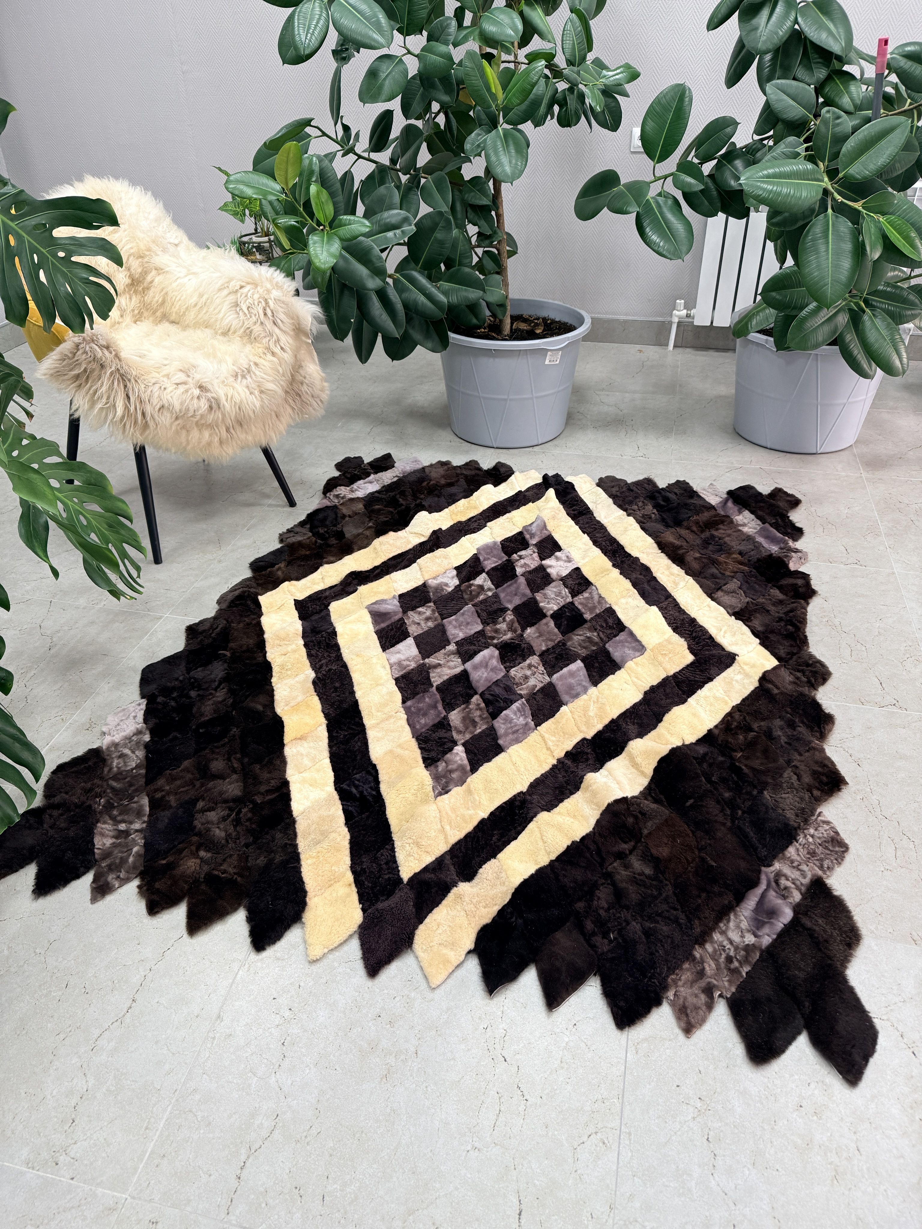Натуральный меховой ковер на пол размером: 165 см х 145 см.Представляем вашему вниманию выделанные овечьи шкуры от компании Barashka34. Уже более 10 лет мы с любовью создаем интерьерные натуральные ковры, покрывала, накидки для кресла . Наши постоянные клиенты высоко ценят уникальность, качество и красоту ручной работы наших опытных мастеров. Натуральный мех – это бесспорно непревзойденный материал для статусности и комфорта современного и классического интерьера.Этот натуральный меховой коврик, шкура овечья, займет достойное место в обстановке дома, дачи и коммерческих помещений, в вашу гостиную, спальню, холл, рабочий кабинет. Придаст уют, комфорт и аутентичность пространству. Одно из главных преимуществ коврика мехового, это природное свойство меха – терморегуляция. Она придает зоне, покрытой шкурой, непередаваемый комфортом – вам будет тепло в холодные периоды, и не жарко, в теплые. Мех натуральной для интерьера, это безопасно, он не содержащих вредных химических веществ и безопасен. Сохраняет тепло и может использоваться как дополнительное утеплительное покрытие на кровати или на диване, в качестве мехового пледа в холодное время года. Регулирует влажность в помещении и поглощать запахи.Изделия из натурального выделанного меха от Barashka34 – это еще и эффективная инвестиция. Интерьерные натуральные ковры от Barashka34 способны на долгие года занять достойное место в интерьерах вашей семьи, передаваясь от поколения к поколению. За счет высокой износостойкости натурального меха и качества работы мастеров. Натуральный материал известен своей долговечностью, хорошо сохраняет свойства, не теряет внешний вид даже после многолетнего использования при правильном уходе.Выделанная шкура овцы – прекрасный выбор для любителей окружать себя уникальными вещами с историей, красивых и качественных изделий из натуральных материалов. Отличный подарок маме, супругу, на юбилей, на праздник.Вся продукция от Barashka34 из натуральных материалов, невероятно мягкая, т.к. в структуре натурального ворса содержатся мелкие волоски. Мех не вызывает раздражения или аллергических реакций. Кроме того, выделанная шкура овцы обладает высокой прочностью и износостойкостью. Она не рвется, не линяет и не деформируется со временем. Благодаря этому изделия из овечьей шкуры могут служить вам долгие годы, сохраняя при этом свои первоначальные свойства.Если вы хотите сделать свой дом местом особенной атмосферы и отдыха, то шкуры выделанные Barashka34 – идеально справятся с задачей!